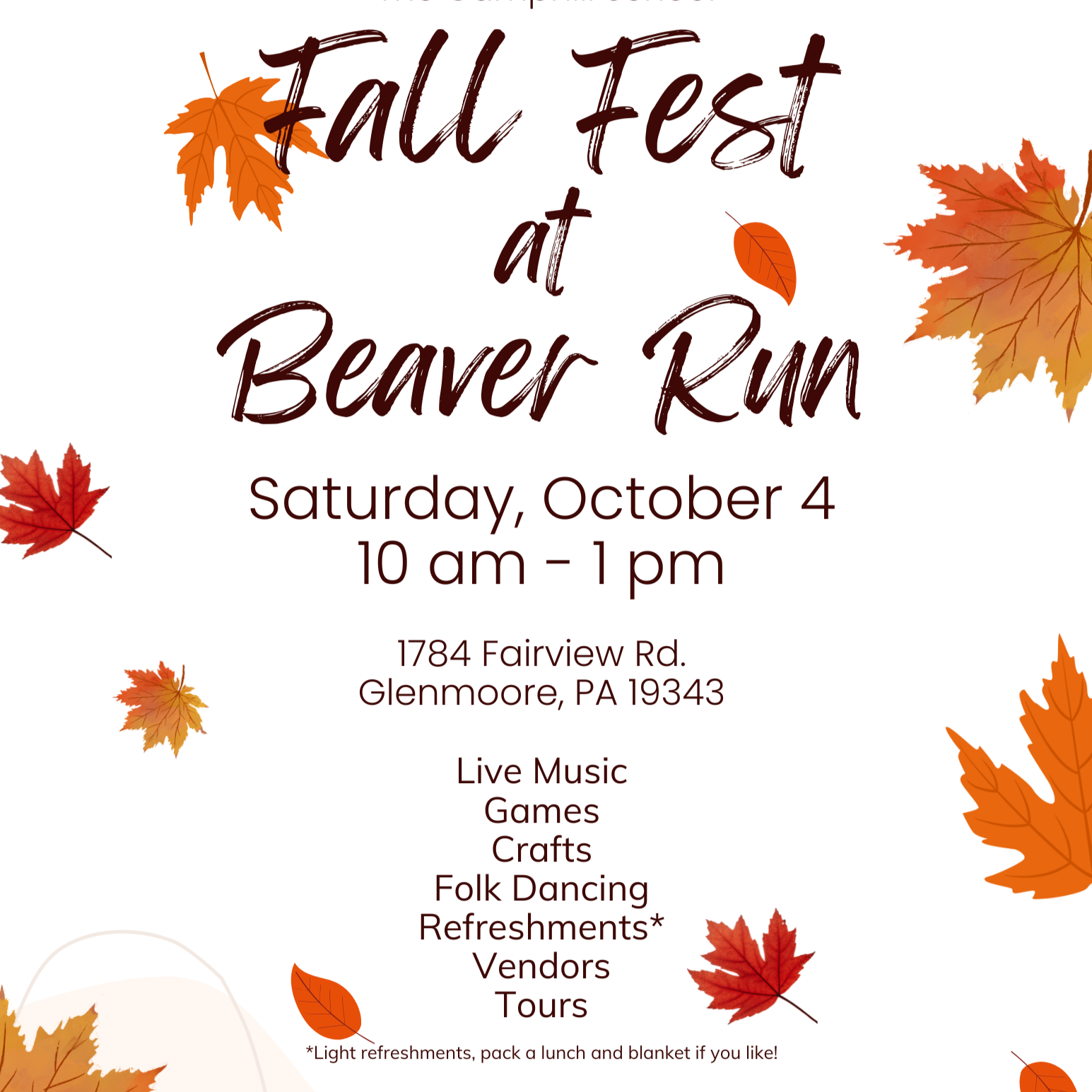 On Saturday, October 4, Parent CONNECT and the Beaver Run Community will host Fall Fest from 10 am to 1 pm. We invite our Camphill families and Beaver Run neighbors to enjoy live music, folk dancing, lawn games, and crafts. Vendors will include Beaver Farm, Foxfield Flowers, and 260 Bridge Cafe.